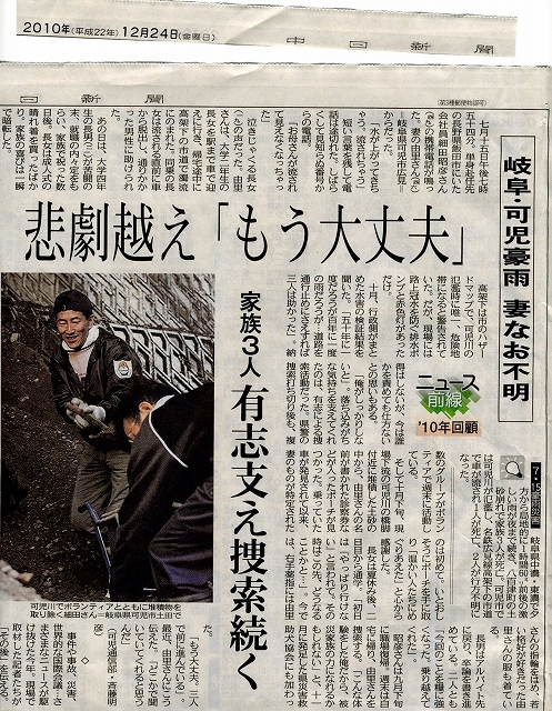 2010年12月22日東海テレビ PM4:50〜 2時間スペシャル に 一般社団法人 岐阜県災害救助犬協会が出演予定。2010年12月19日岐阜駅南口において募金活動の申請し許可が下り、初めての募金活動NHKのニュースPM0:15〜、PM6:45〜2回 可児川災害今年最後の捜索で、捜索場面の撮影